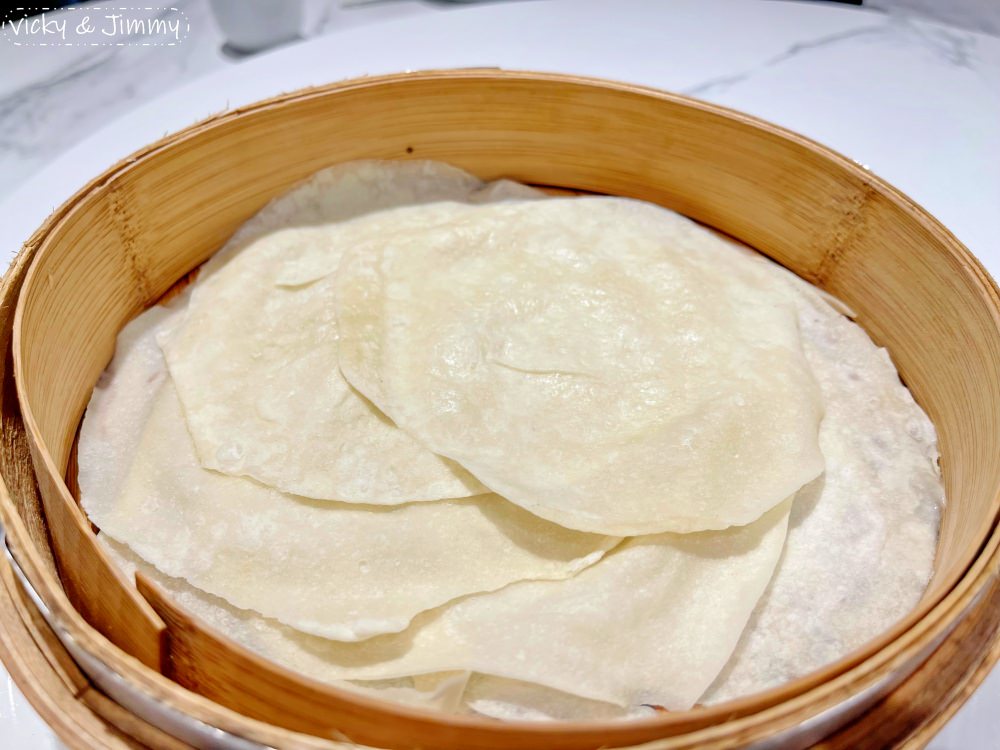 每半隻鴨會附一份餅皮五張加蔥段、小黃瓜跟特製片皮鴨醬,如果覺得不夠可以再加點。