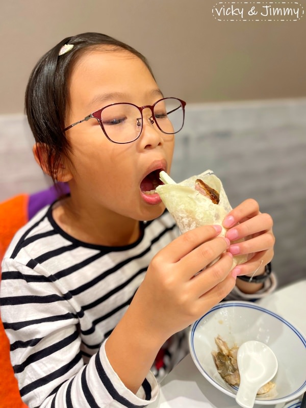 鳴鴨館的片皮鴨不會太薄,每一塊鴨皮的部分咬下都聽得見咔滋聲,