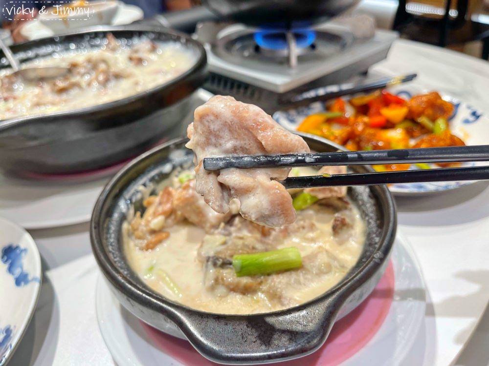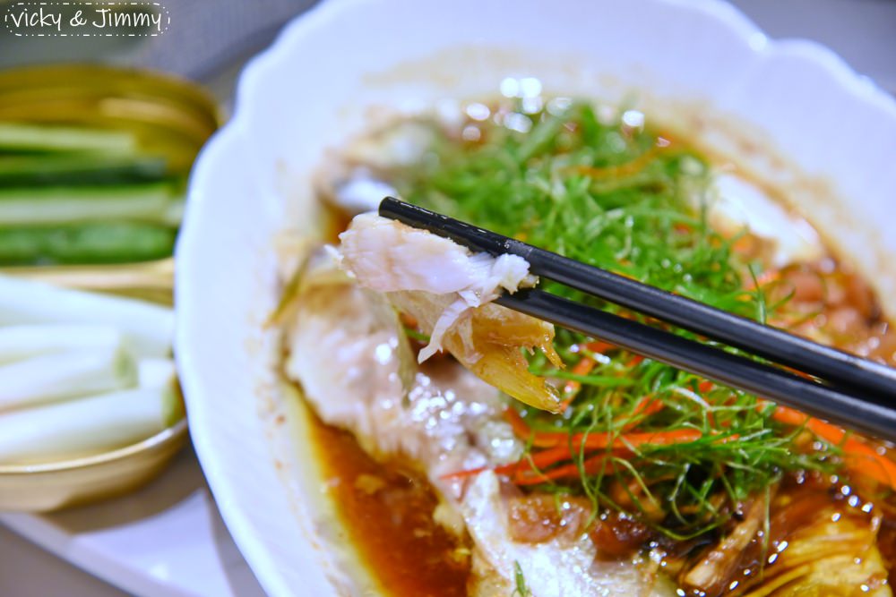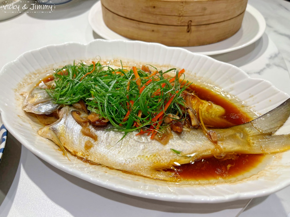 這道是潮州的特色料理,採用新鮮午魚,以清蒸方式,加入潮州冬菜、香菇、蔥絲,魚肉細緻鮮嫩。