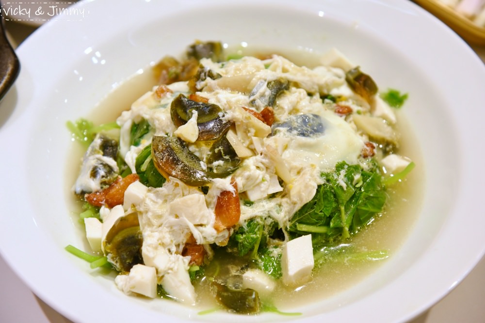使用皮蛋、鹹蛋白跟蛋白混和,以濕炒的方式呈現,莧菜軟嫩好入口,超好吃!!!