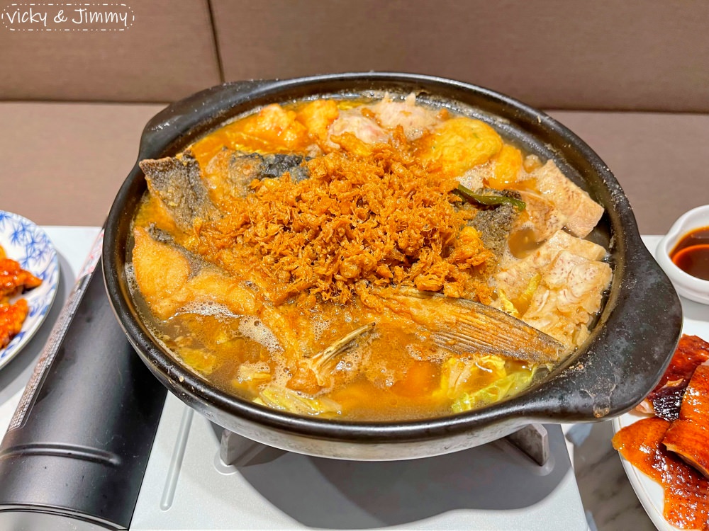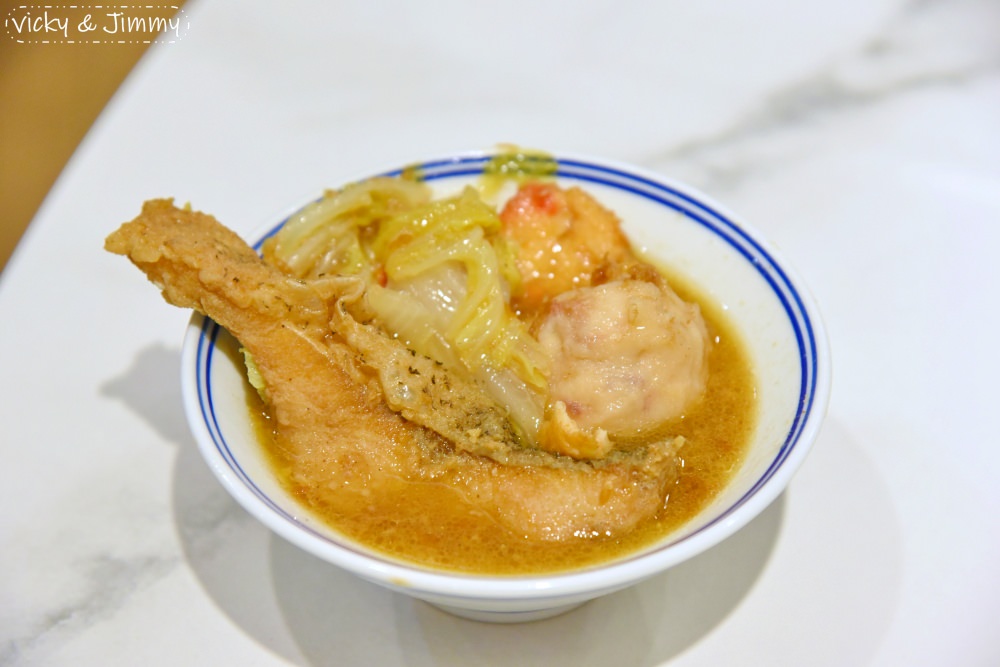 搭入潮汕特色沙茶及鯿魚熬成的湯底,白菜、手工丸料,隨著砂鍋滾起噗噗聲中,香氣亦隨著冒起的蒸汽飄進腦門中,